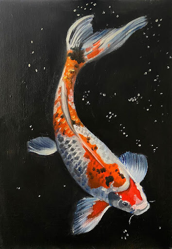 Главный герой мастер-класса - величественный карп кои — не просто рыба, а древний символ силы духа, проявляющийся из глубины и теней.