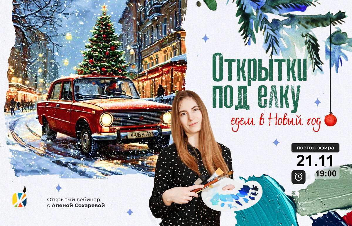А еще вы успеете присоединиться к новому курсу от 3-х художников Школы - "Новогодние открытки 2026"!