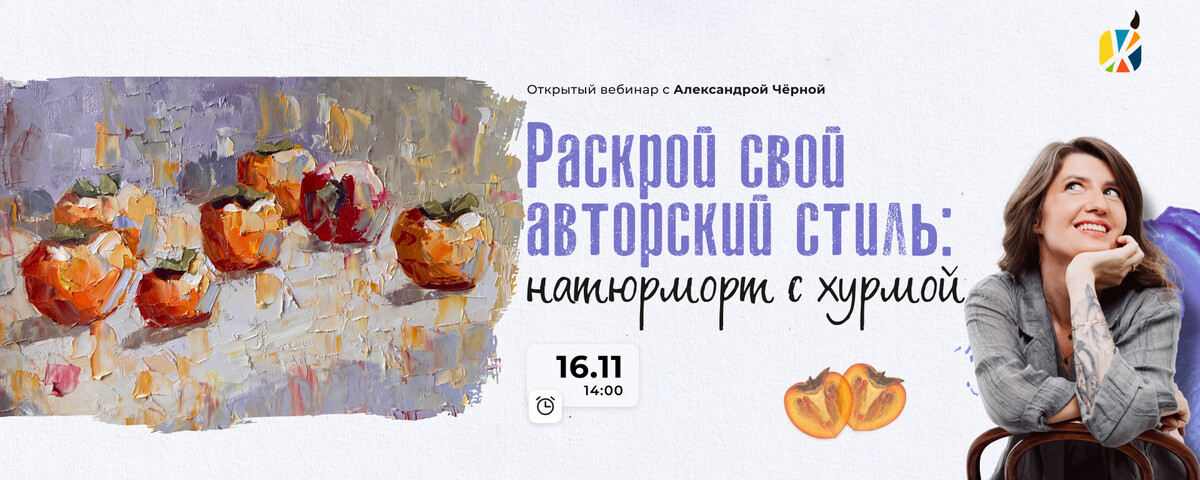 Приглашаем на атмосферный мастер-класс с художницей Александрой Чёрной, где вы создадите живописный натюрморт с хурмой мастихином — и шаг за шагом начнёте раскрывать свой авторский стиль 🎨